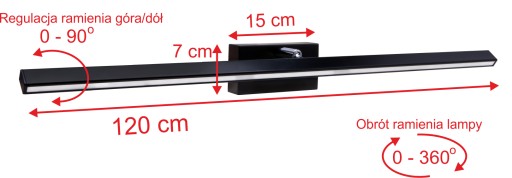 - Długość panelu oświetlającego: 120 cm.