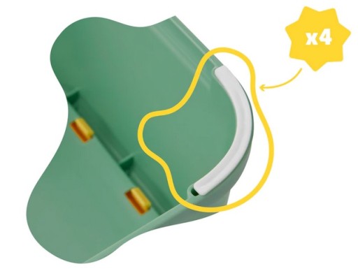 Antypoślizgowa powłoka stopnia dodatkowo stabilizuje dziecko i chroni przed upadkiem, a antypoślizgowy spód zapobiega przesuwaniu się po podłodze.