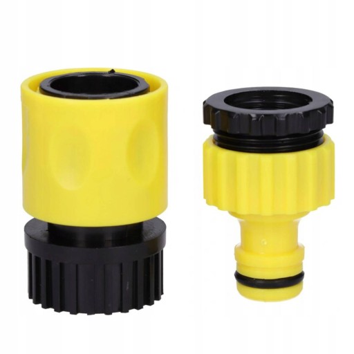 Zestaw zawiera przyłącze kranowe do do szybkozłączki oraz redukcję, która pozwoli przykręcić przyłącze kranowe niezależnie od tego czy posiadają Państwo kran 1/2 cala czy 3/4 cala.
