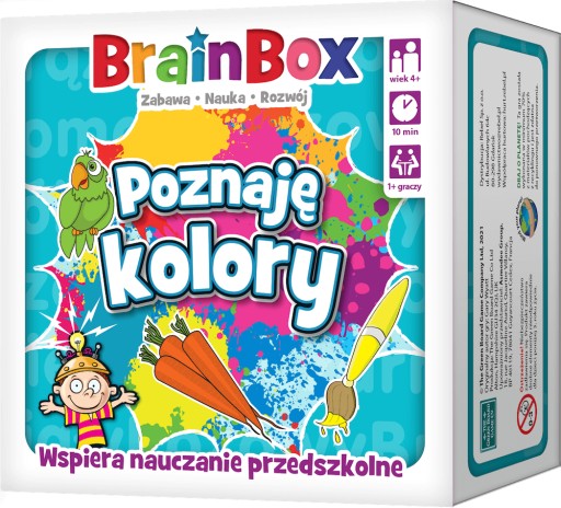 Szukasz gry, która pozwoli Ci spędzić z dzieckiem wartościowy czas, a jednocześnie będzie wspierać jego rozwój już w okresie przedszkolnym? BrainBox - Poznaję kolory to coś dla Ciebie! Ta rodzinna gra zabierze młodsze i starsze umysły w ekscytującą podróż pełną ciekawych odkryć rozwijających spostrzegawczość i pamięć. Na 24 kartach znajdziesz czarne koty, kolorowe rośliny, a nawet pysznie wyglądające słodycze, które pomogą maluchom w nauce rozpoznawania i nazywania barw.
