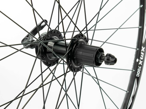 Tylne koło rowerowe MTB w rozmiarze 29”, zbudowane z obręczy i piasty XMX A291, oraz 36 czarnych szprych. Doskonale sprawdzi się podczas jazdy bardziej dynamicznej, po płaskich i nierównych nawierzchniach oraz podczas ostrego hamowania. Stożkowa, trzykomorowa obręcz wykonana została z aluminium, dzięki czemu jest niezwykle wytrzymała, a jednocześnie bardzo lekka. Jej konstrukcja przystosowana jest do montażu opon dętkowych, posiada 36 otworów na szprychy, za pomocą których połączona jest z piastą oraz ma specjalnie szlifowane boki. Piasta wyposażona jest w maszynowe łożyska, standardowe mocowanie na szybko-zamykacz (QR), dostosowana jest do hamulca tarczowego montowanego na 6 śrub oraz współpracuje z kasetą 8-9 biegową. Dzięki użyciu najwyższej jakości komponentów do złożenia koła, jest ono niezwykle sztywne, trwałe i odporne na duże przeciążenia. Dedykowane jest głównie do rowerów typu MTB, miejskich i trekkingowych, gwarantując bezpieczną i komfortową jazdę oraz płynną i bezproblemową pracę całego układu jezdnego roweru.