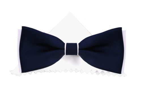 KOMUNIJNA MUSZKA GRANATOWO BIAŁA MUCHA Z POSZETKĄ