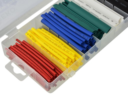 Zestaw wysokiej jakości koszulek termokurczliwych. W skład zestawu wchodzi 128 sztuk rurek termokurczliwych w 6 popularnych rozmiarach. Koszulki chronią przewody przed wilgocią i korozją.