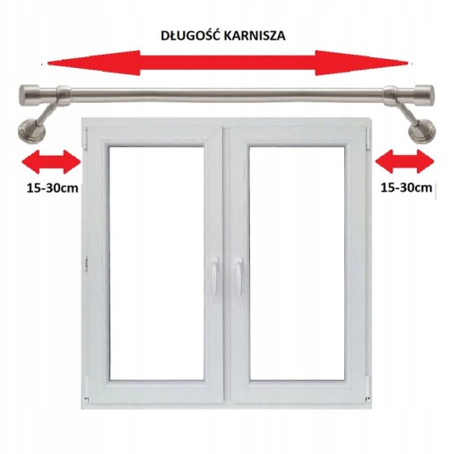 Pomiar potrzebnego karnisza, należy zacząć od pomiaru wnęki okna. Do uzyskanego wymiaru należy dodać 15-30 cm z każdej strony okna dla idealnego rezultatu i funkcjonalności karnisza.