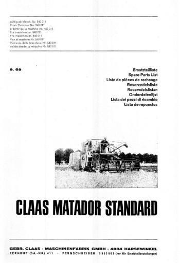 Каталог запчастей CLAAS MATADOR STANDARD.