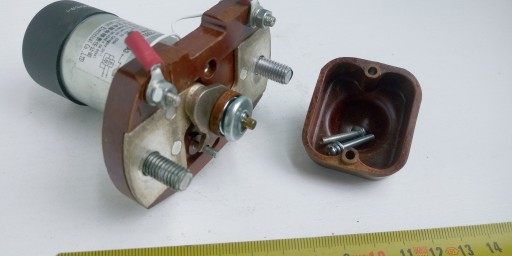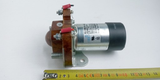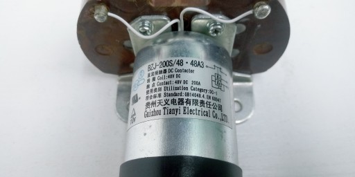 Przekaźniki marki Guizhou Tianyi, model BZj-200S/48, cewka zasilana napięciem stałym 48V DC (przekaźnik bez problemu włącza się przy 24V DC), prąd 200A, styki 1xNC. Przekaźnik po przeglądzie technicznym, styki w bardzo dobrym stanie, nie wypalone, nie buczy.