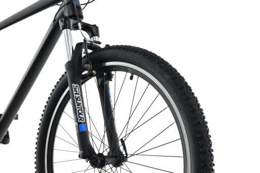 Przedni widelec amortyzowany marki SR-SUNTOUR XCE o skoku 100mm, posiadający regulację twardości. Tłumiący drgania i zapewniający wysoki komfort jazdy.