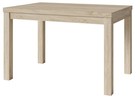 Blat wykonany został z płyty wiórowej wykończonej laminatem w kolorze dąb sonoma. Jego grubość to 32 mm. Krawędzie wykończone zostały doklejką ABS – dla większej odporności na uszkodzenia i otarcia. Nogi pełne wykonane zostały z wykorzystaniem innowatorskiej technologii - z płyty komórkowej wzmacnianej drewnianymi wstawkami o wysokiej gęstości. Pozwala to zachować wysoką wytrzymałość przy równoczesnym zredukowaniu wagi stołu.