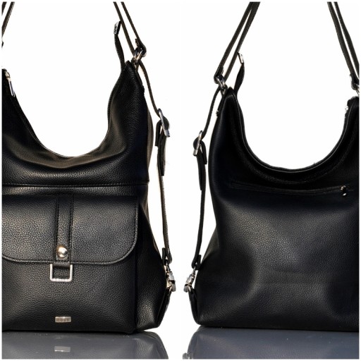 TOREBKA PLECAK SKÓRZANA 2W1 CZARNA NATURALNA SKÓRA