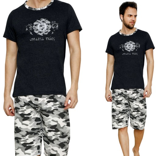 BAWEŁNIANA PIŻAMA MĘSKA Z KRÓTKIM RĘKAWEM ORAZ SZORTAMI MORO