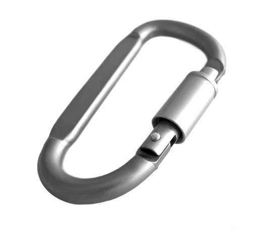 Bardzo praktyczny aluminiowy karabińczyk do zamocowania na pasku lub lince. Klamra wykorzystana może być również jako zawieszka lub element mocujący dla kluczy, sprzętu i narzędzi elektrycznych.