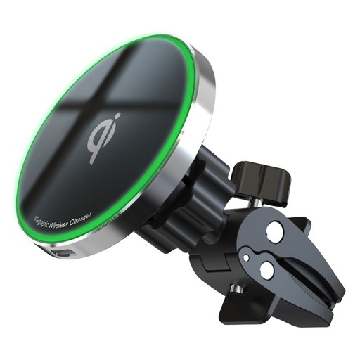 Magnetyczny uchwyt samochodowy firmy Wykonany z wysokiej jakości materiałów (w tym ze stopu aluminium), montowany do kratki wentylacyjnej auta. Akcesorium wyposażono w Bardzo silne magnesy, które są zapewniają stabilność i bezpieczeństwo i Ładowanie bezprzewodowe każdego telefonu