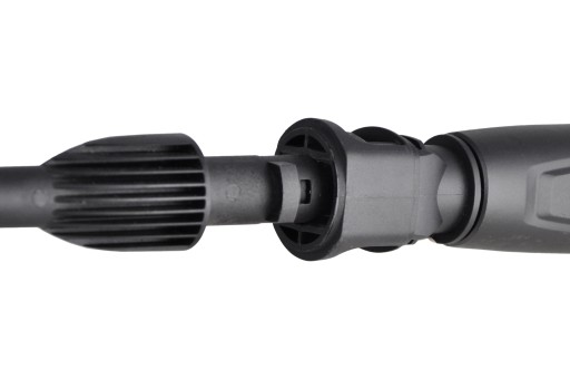 Pistolet posiada przyłącze do węża ciśnieniowego typu click. Dzięki czemu montaż węża odbywa się bardzo szybko. Wystarczy wetknąć końcówkę węża do gniazda w pistolecie. Demontaż natomiast odbywa się dzięki wygodnemu przyciskowi. W ten sposób znacznie przyspiesza się instalację zestawu.