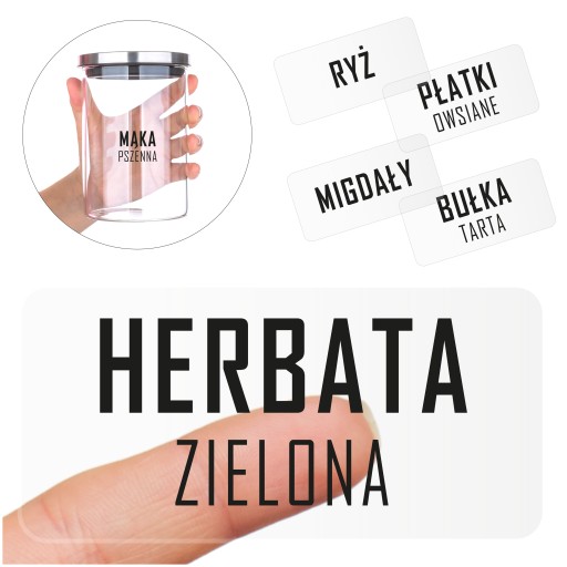 NAKLEJKI ETYKIETY na słoiki do kuchni pojemniki TRANSPARENTNE 60szt.
