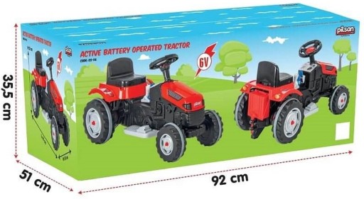 Wygodne siedzenie posiada możliwość regulacji odległości od kierownicy, umożliwiając odpowiednie dopasowanie do wzrostu dziecka. Traktor jako pojazd dla małych dzieci jest bardzo stabilny na drodze. Wykonany z wysokiej jakości materiałów odpornych na ścieranie i uderzenia. Kolorystyka i wygląd z najdokładniejszymi szczegółami oddaje prawdziwe traktory. Hak holowniczy z tyłu pojazdu pozwala podczepić przyczepkę i jeszcze bardziej uatrakcyjnić zabawę.