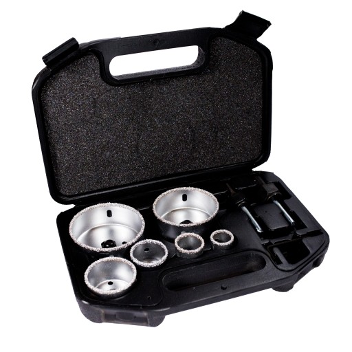 Zestaw otwornic wolframowych przeznaczony do precyzyjnego wykonywania okrągłych otworów w twardych materiałach, takich jak glazura czy beton. Z reguły, otwornice wykorzystywane są do wiercenia otworów pod rury wentylacyjne, sanitarne, wodno-kanalizacyjne, odpływowe puszki rozdzielcze, rozgałęźne i kontaktowe, zamki a także oświetlenie halogenowe. Z tego względu narzędzie to najczęściej stosowane jest przez profesjonalistów z różnych branż. Prezentowany zestaw solidnych wymiennych otwornic montowanych na stabilnym uchwycie zakończonym sześciokątnym trzpieniem z wiertłem pilotującym. Krawędź skrawająca pokryta nasypem wolframowym.