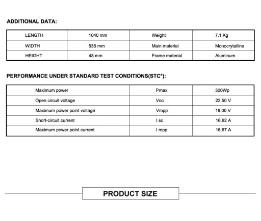 - Napięcie otwartego obwodu (Voc): 22.50V