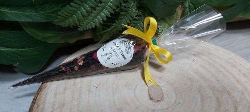Wielkość: Od czubka do wiązania kokardki rożek ma ok.10-13 cm. Cały rożek ma ok.15-17 cm. Waga jest 10 g ale objętość herbat i kaw jest różna stąd różnica w wielkości.