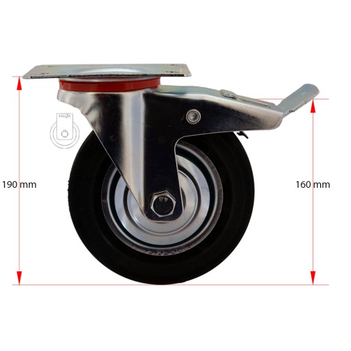 - OBUDOWY wykonane są blachy stalowej o dużej wytrzymałości. Płytka ma wymiary 135x110 mm. Kółka mają średnicę 160 mm, a centra mocowań mają wymiar 105 x 75 i owalne otwory do mocowania o wymiarach 11 x 15 mm. Wysokość całkowita wynosi 190 mm.