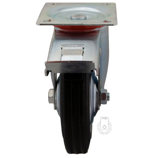 Koło posiada piastę metalową oraz oponę gumową, obudowa pokryta jest ocynkiem.