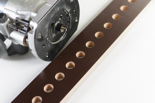 Średnica pod szablon z otworami do pierścienia 20mm, o grubości sklejki 15mm.