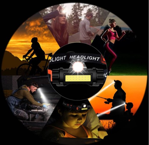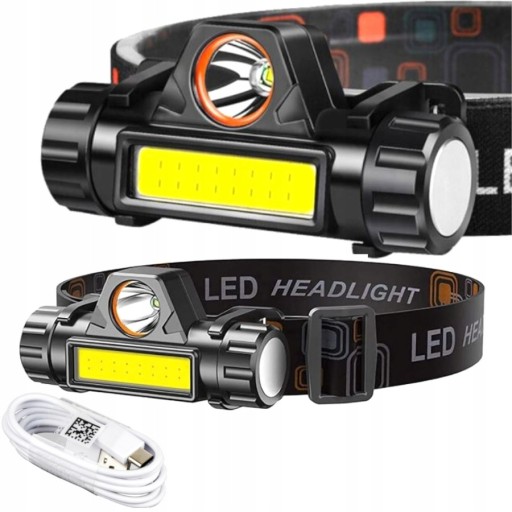 Latarka LED CZOŁOWA Taktyczna lampka COB USB 2tryby 250lm 4w1