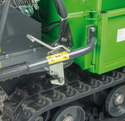 Sterowanie gąsienicami za pomocą dźwigni hamulca wymaga na początku trochę przyzwyczajenia. Jednak po kilku minutach wszystko działa idealnie. W tym miejscu należy zwrócić uwagę na jedyną wadę maszyny. Wibracje na końcach kierownicy są bardzo wyraźne i na dłuższą metę naprawdę denerwujące. Zmniejszenie prędkości silnika może pomóc, ale producent powinien pomyśleć o odłączeniu silnika lub kierownicy przy następnej aktualizacji modelu. Podczas jazdy wywrotka prawie nie pozostawia śladów dzięki dużej powierzchni styku. Nawet ruchy kierownicą nie pozostawiają śladów