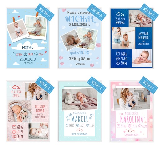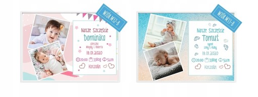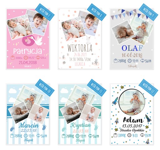 Uwaga! Po zakupie prosimy o wskazanie wybranego wzoru koloru ramy oraz podanie imienia, daty, godziny, miejsca urodzenia, wagi i wzrostu dziecka.