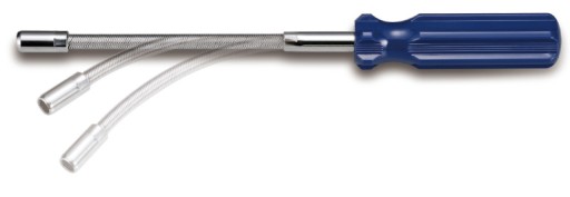Wkrętak elastyczny przystosowany do zakręcania opasek ślimakowych, z łbem sześciokątnym 7 mm.