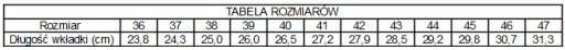 Po wybraniu odpowiedniego rozmiaru , proszę o sprawdzenie długości wkładki według tabeli rozmiarów.