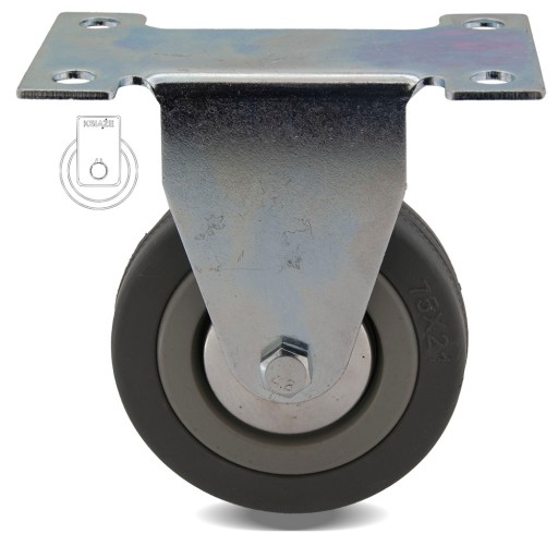 Koło składa się z polipropylenowej piasty oraz z niebrudzącej gumowej opony, posiada łożysko ślizgowe, wersja z osłonką.