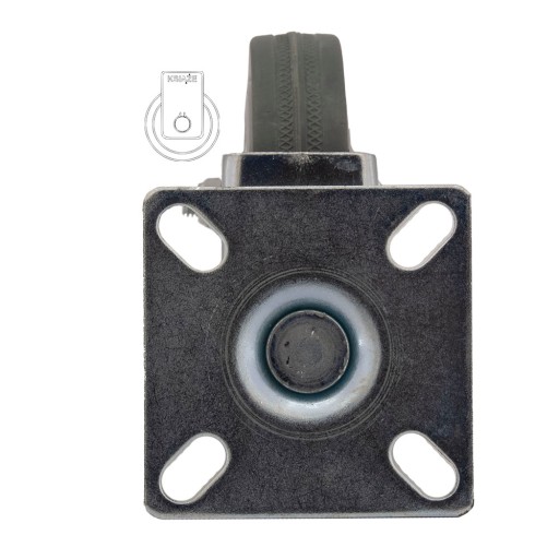 - OBUDOWY wykonane są blachy stalowej o dużej wytrzymałości. Płytka ma wymiary 65 mm x 65 mm. Kółka mają średnicę 75 mm, a centra mocowań mają wymiar 45 x 45 mm i owalne otwory do mocowania o wymiarach 15 x 8,2 mm. Wysokość całkowita wynosi 100 mm.