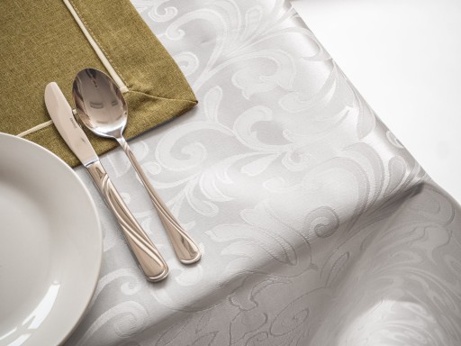 Szykujesz się na uroczystość rodzinną? Wysokiej jakości obrus plamoodporny teflonowany to nierozerwalna część każdego domu. Odporny na uciążliwe plamy obrus, pozwoli Ci cieszyć się nieskazitelną czystością, za każdym razem gdy po niego sięgniesz. Nowoczesne i staranne wykonanie sprawia, że idealnie prezentuje się na każdym stole zarówno w jadalni jak i w salonie. Dzięki motywom roślinnym w kolorze białym, obrus nada Twojemu salonowi eleganckiego wyglądu. Dodatkowym atutem obrusa jest to iż nie wymaga on maglowania ani krochmalenia.