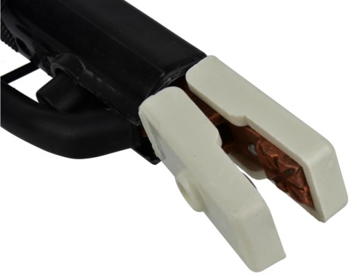 Solidny uchwyt przeznaczony do spawania elektrodami otulonymi. Uchwyt wykonany z materiałów najwyższej jakości. Rączka wykonana z tworzywa zaizolowanego, natomiast uchwyt na elektrodę spawalniczą wykonany został z mosiądzu. Elementy izolowane wykonane są z tworzywa o wysokiej odporności na uszkodzenia mechaniczne oraz na wysoką temperaturę.