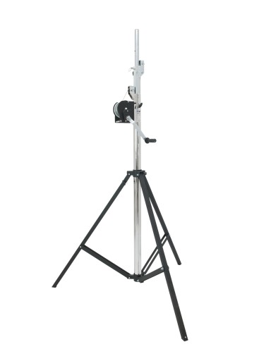 Stalowy statyw oświetleniowy z korbą linową idealny dla ciężkich świateł (obciążenie aż do 100kg) oraz z możliwością do wykorzystania go na kolumny głośnikowe.