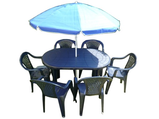 ТЕМНО-СИНИЙ КОМПЛЕКТ 6+1 БОЛЬШОЙ СТОЛ, СТУЛЬЯ + ЗОНТИК