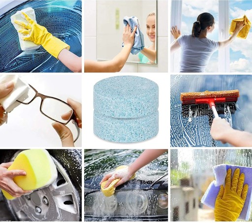 Produkt można także wykorzystać w domu podczas mycia szyb lub całego samochodu. Wystarczy do wody wrzucić tabletkę i poczekać, aż całkowicie rozpuści się we wodzie - gotowe! Bez problemu można zamoczyć delikatną szmatkę do czyszczenia szyb w przygotowanym preparacie.
