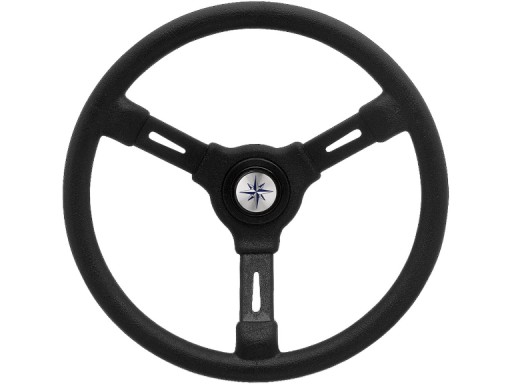 Włoska kierownica jachtowa - model Riviera. Stelaż wykonany ze stali nierdzewnej. Obręcz kierownicy pokryta tworzywem sztucznym. Montaż kompatybilny ze wszystkimi jachtowymi przekładniami kierowniczymi. Parametry: