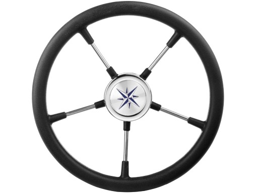 Włoska kierownica jachtowa - model Riva RSL. Stelaż wykonany ze stali nierdzewnej. Obręcz kierownicy pokryta przyjemnym w dotyku tworzywem sztucznym (tanegum). Montaż kompatybilny ze wszystkimi jachtowymi przekładniami kierowniczymi. Parametry: