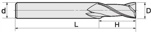Frez palcowy z węglika 2-pióra fi 6 mm, trzpień 6 mm z powłoką TiN+Si Twardość 55HRC