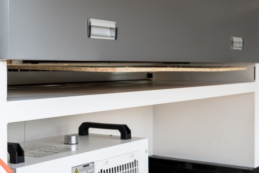 W zestawie z urządzeniem otrzymujesz również profesjonalną chłodnicę cieczy (Chiller CW 5000), która wspomaga chłodzenie tub laserowych.