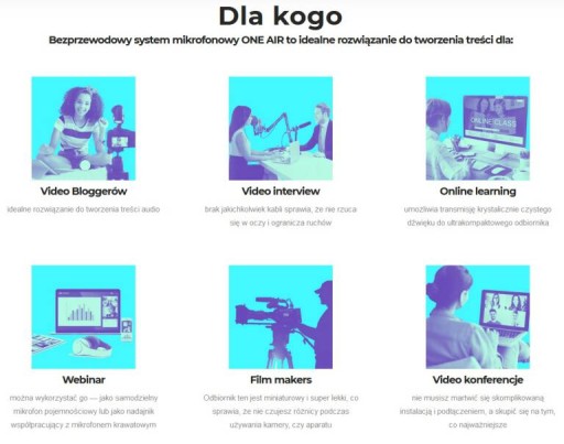 - Bezprzewodowy system mikrofonowy ONE AIR to idealne rozwiązanie do tworzenia treści dla: