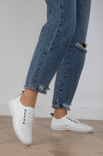 BIAŁE SKÓRZANE AŻUROWE TRAMPKI TENISÓWKI 38