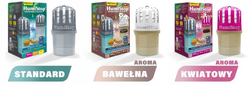 Zawsze sucho, zawsze świeżo, zawsze skutecznie, zawsze .... Humistop. Ważne aby dopasować model pochłaniacza do wielkości pomieszczenia. W ofercie znajdą Państwo pochłaniacze w różnej wersji kolorystycznej, zapachowej jak również przeznaczone na określoną powierzchnię pomieszczenia. Pochłaniacz standardowy HumiStop dedykowany jest na około 18 m2 natomiast wersja HumSitop MAXI zadba o zbieranie wilgoci z powierzchni do około 30 m2.
