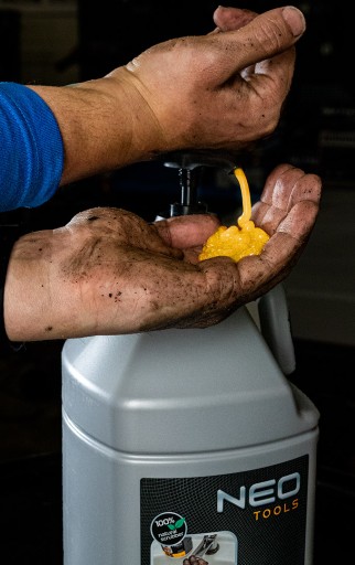 Żelowa, żółta, pasta do mycia rąk, do usuwania trudnych i bardzo trudnych zabrudzeń - butelka 4 litry z pompką NEO (nr ref. 10-406) poradzi sobie z zabrudzeniami, którym nie da rady mydło. Przeznaczona dla fachowców pracujących w budownictwie, motoryzacji, poligrafii, lakiernictwie.