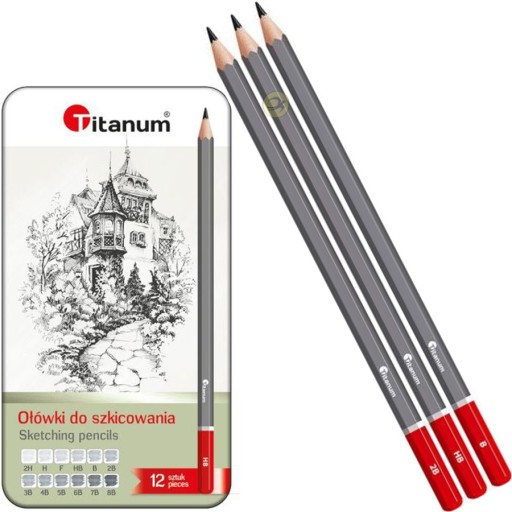 Ołówki do szkicowania w metalowym pudełku 12 sztuk Titanum