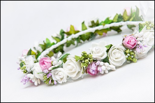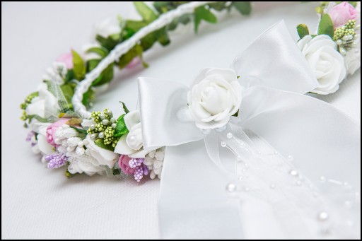 Przedmiotem oferty jest piękny wianek komunijny wykonany ręcznie z kwiatów piankowych oraz dodatków florystycznych.