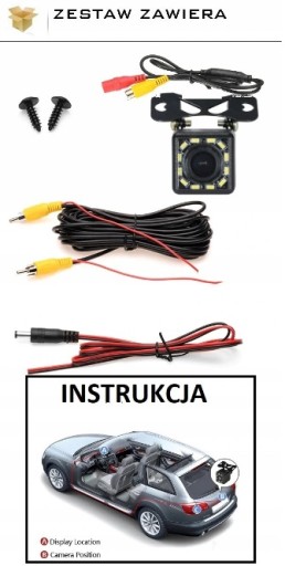 BARDZO PROSTY SPOSÓB MONTAŻU, W ZESTAWIE CAŁY KOMPLET DO PODŁĄCZENIA KAMERY WRAZ Z PRZEWODEM O DŁUGOŚCI 6 METRÓW.