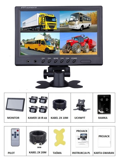 МОНИТОР 9 ДЮЙМОВ КАМЕРА 4X TIR КОМБИНИРОВАННЫЙ ИНФРАКРАСНЫЙ СВЕТОДИОД