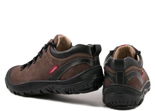 Cholewka w brązowych butach NAGABA 241 została wykonana z naturalnej skóry typu barka, a wewnątrz - zastosowany materiał podszewkowy również ze skóry naturalnej. Gwarantuje to nie tylko odpowiednią trwałość, ale również ułatwia to „oddychanie” stopy, czyli odprowadzanie zbierającej się wilgoci. Z tego też względu półbut trekkingowy NAGABA 241 brąz barka skórzany spełni swoje zadanie podczas rekreacyjnych spacerów, a także wymagających wędrówek po górskich szlakach, zarazem ciekawie się prezentując z pozostałą częścią sportowej stylizacji.